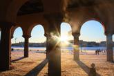 Солнце еще не встало. На небе висит малиново-голубой градиент протыканный шпилями башен. Медленно поглощаемся в головокружительную красоту города. Холодно...