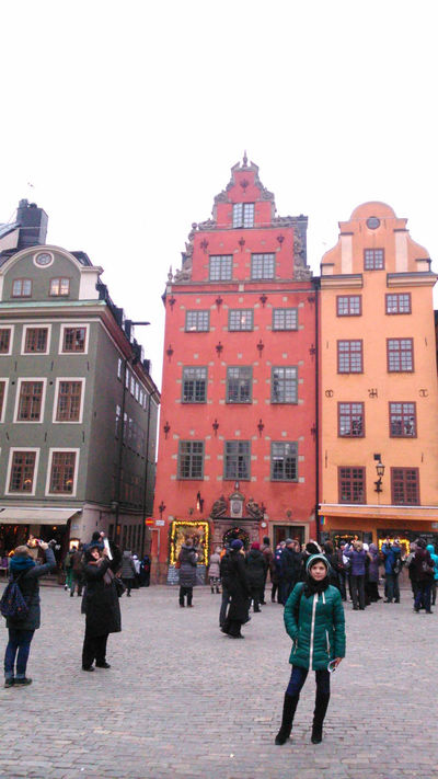 Выходим с парома практически последними и устремляемся за людьми с чемоданами, так мы оказались в метро. Очереди были и в кассу и в киоск Pressbyran, я превозмогая головную боль пролезла вперед всех (до сих пор очень стыдно, но иначе я бы умерла в очереди) и купила проездную карточку оплатив проезд на 5 человек до Slussen и обратно, еще и скидку получили, как приятно было. Еще дома я наметила себе план посещения достопримечательностей, и мы всем коллективом решили следовать ему. Поехали до станции Slussen, там мы ребят отправили на смотровую площадку делать фотографии, а сами с Машей любовались панорамой Стокгольма с набережной. Хочу сказать, что с погодой нам очень повезло, было достаточно тепло для прогулок по городу, осадков и ветра не было, благодать.