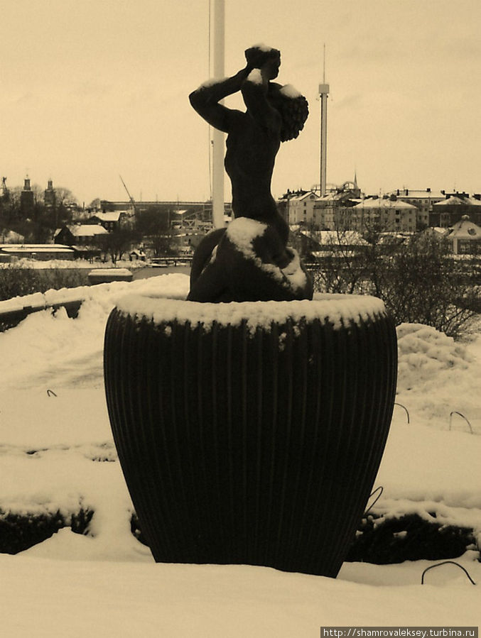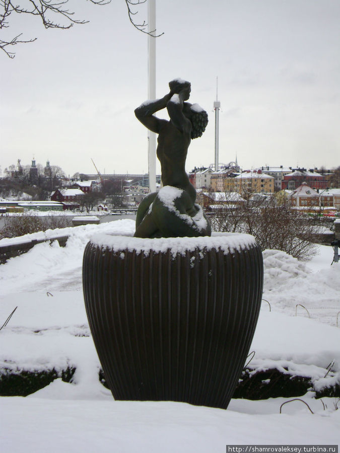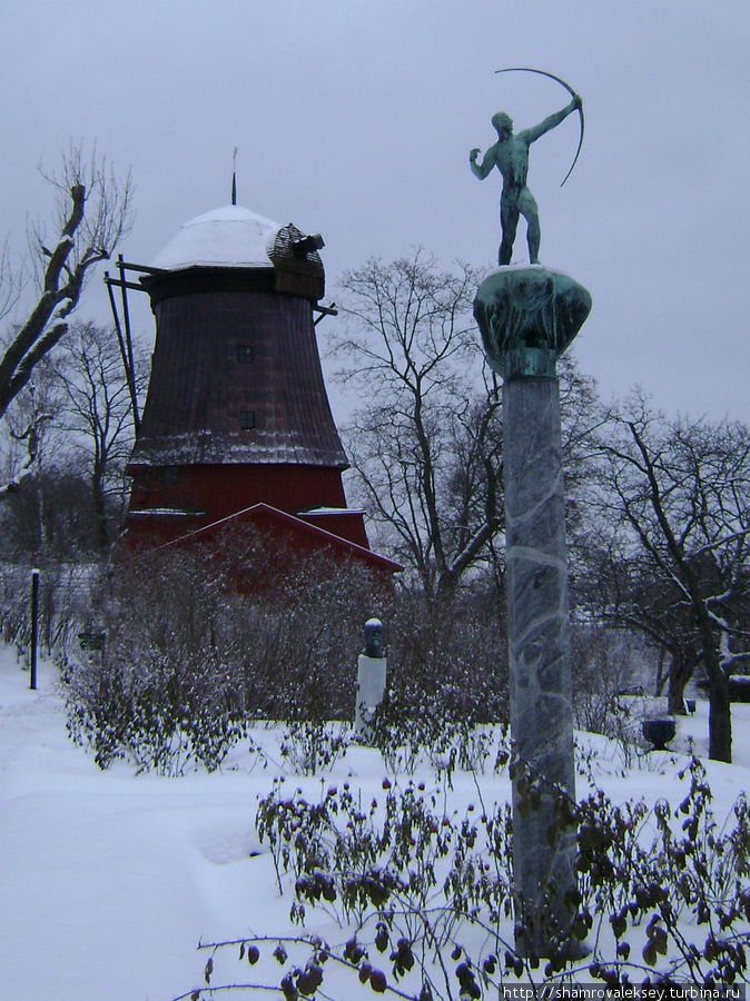 В Стокгольме зимой сумерки начинаются рано. Когда я дошел до парка и дома-музея принца Евгения уже начинало темнеть, что добавило некоторой таинственности скульптурам заселяющим парк. Солнечным днём в парке появляются другие ощущения от прогулки по парку.