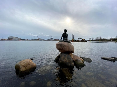 На следующий день утром дошли до знаменитой русалочки на набережной. Памятник понравился, но вот фон за ним – какая-то промзона с дымящими трубами.