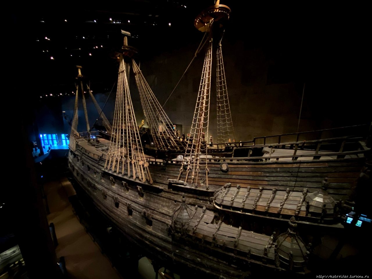 После музея Аббы все-таки дошли до музея Ваза, где стоит судно XVIII века, затонувшее в первый же свой выход в море. Спустя 333 года, в 60-х гг XX века, его подняли на поверхность. Судно большое, красиво оформленное, с множеством пушек и украшений, высотой в несколько этажей, стоит в полутемном помещении, красиво подсвечиваемое. Почему Ваза? Судно получило свое название в честь династии шведских королей, правивших в то время.