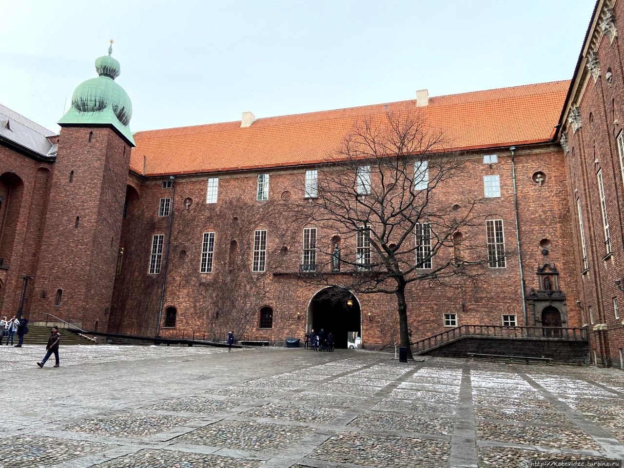 В Стокгольме дошли до здания ратуши. В нем ежегодно проходит банкет после вручения Нобелевской премии. Здание очень впечатлило своей мощью. Казалось, что очень древнее, хотя построено в начале прошлого века, просто стиль постройки такой, скандинавский что ли (темные массивные здания, которые напомнили мне архитектуру в центре Хельсинки).