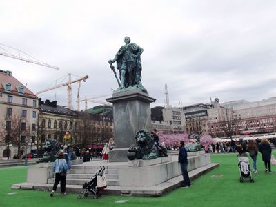 Бронзовый Карл XII монументально застыл при входе в сад, а его бронзовый потомок Карл XIII, последний король из Гольштейн-Готторпской династии, который правил Швецией с 1809 по 1818 год, стоит в центре парка.