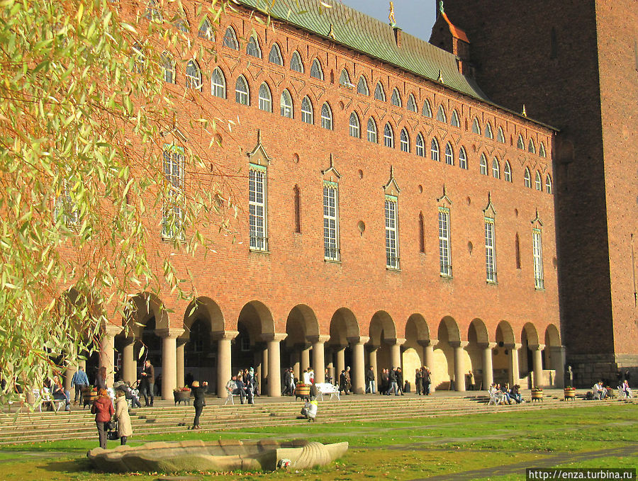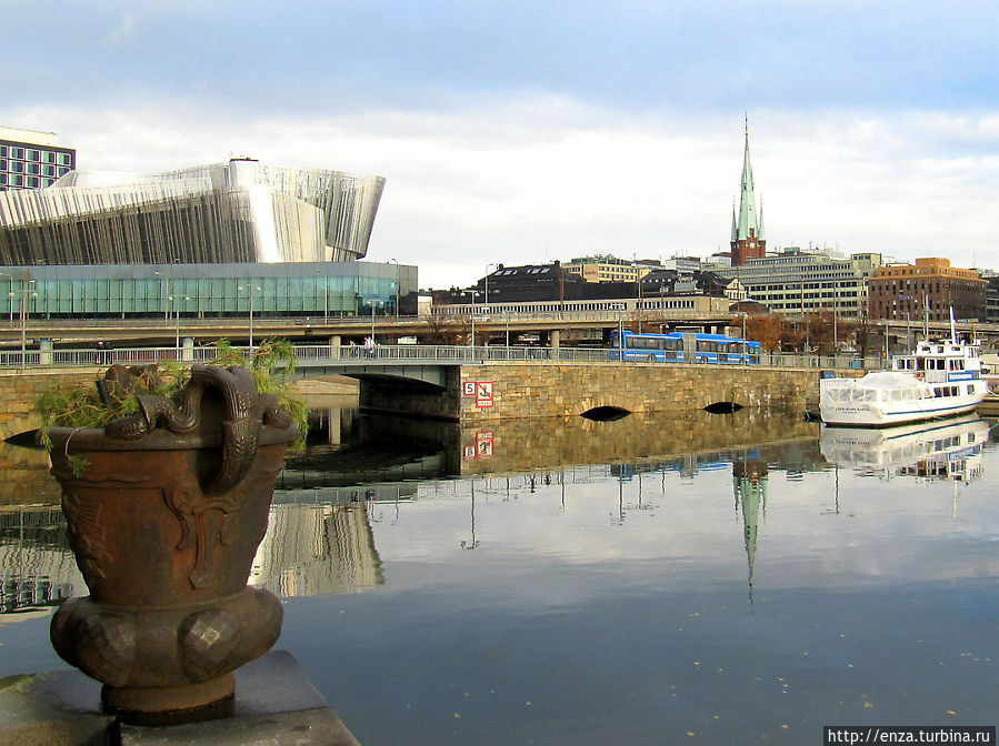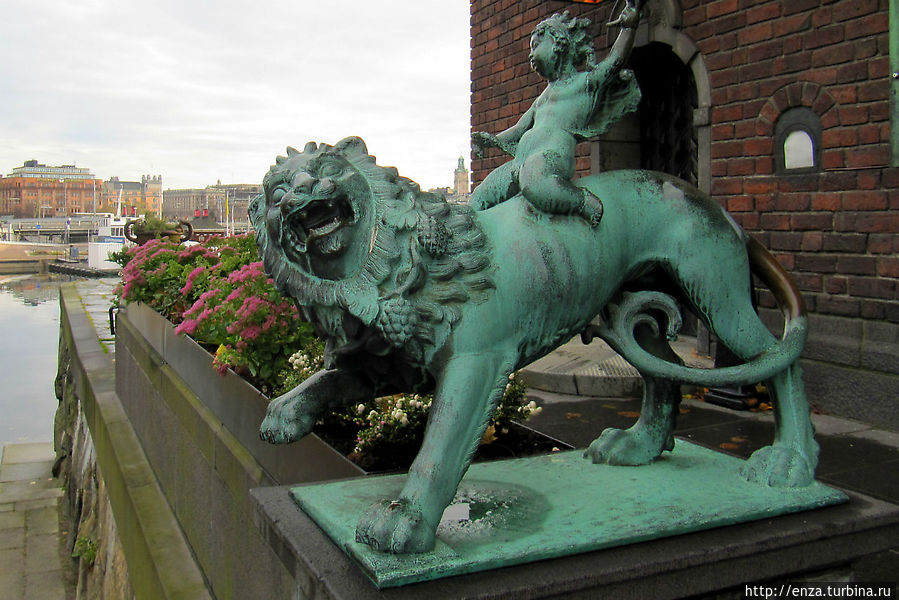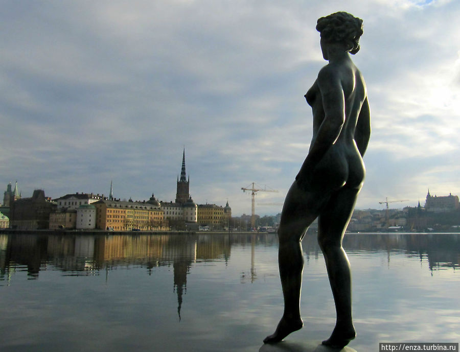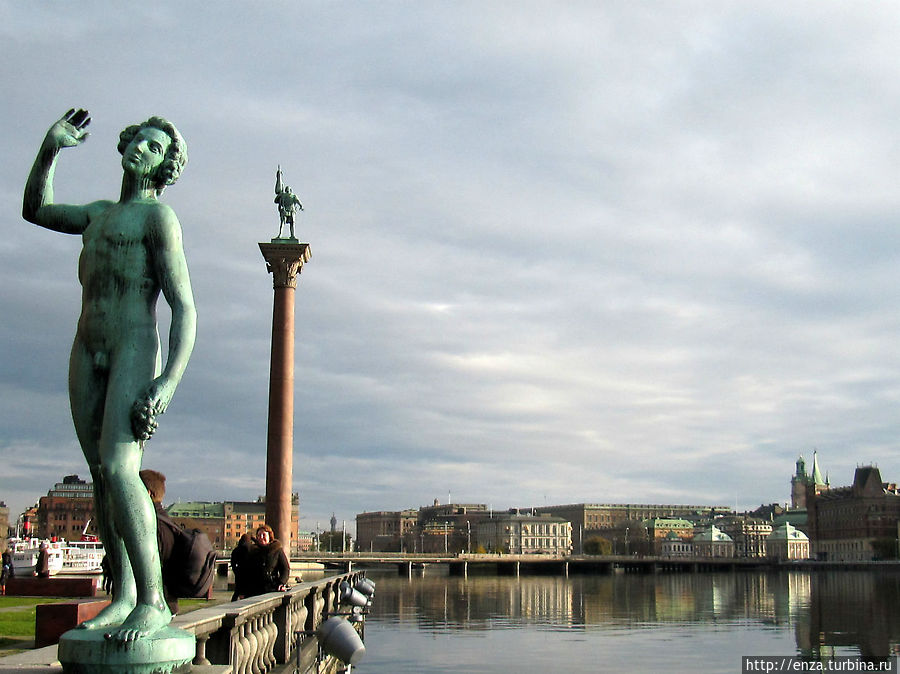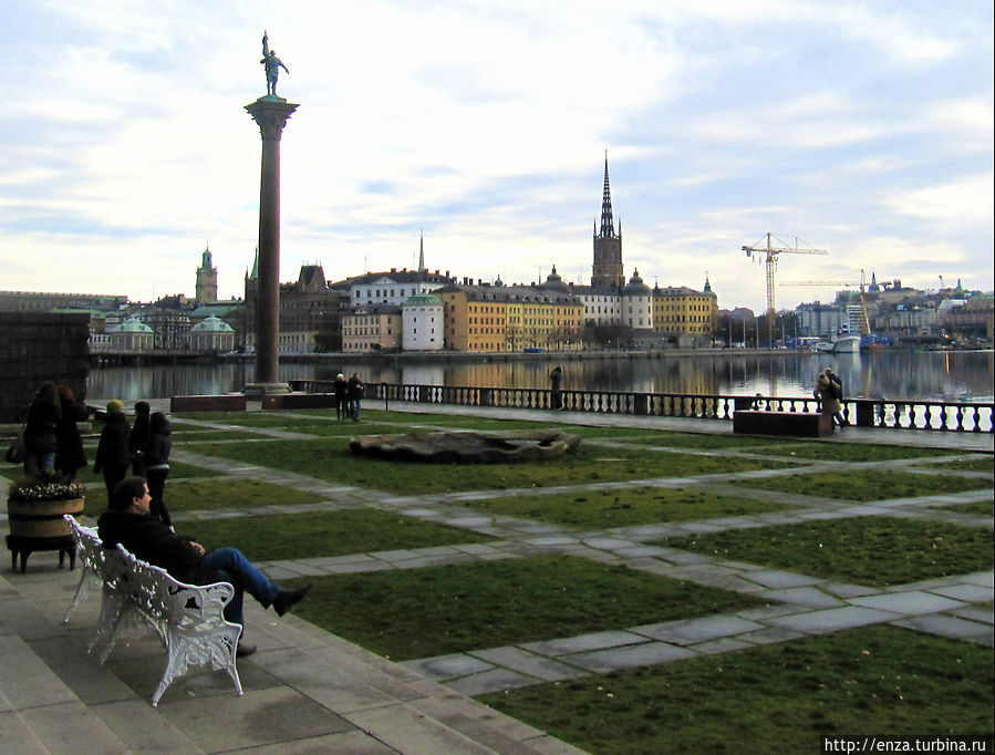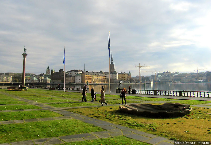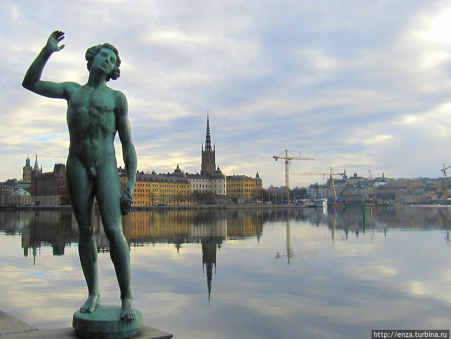 С набережной у Ратуши открывается великолепная панорама. Это вообще очень приятное место. Жизнерадостное и позитивное. За соотечественниками тоже занятно понаблюдать. Тут кто-нибудь обязательно то в задницу местной статуи головой уткнется, то у другой статуи за что-нибудь выпирающее подержится, то со скрещенными руками на скамейке рядом с кенотафом основателя Стокгольма Ярла Биргера пристроится… Один нескончаемый креатив. Причем, как-только одна группа сменит другую, креатив обязательно повторится и даже комментарии будут похожими.
