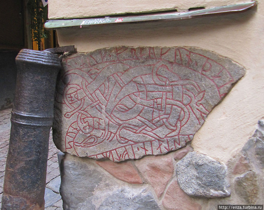 Пушечное ядро, застрявшее в стене дома по адресу Stortorget, 7