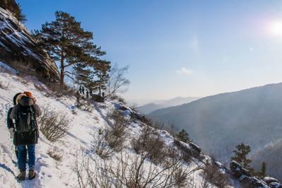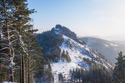 Всего на территории заповедника находится более сотни больших и малых столбов. У каждого есть свое название — Воробушки, Дед, Беркут, Сторожевой и прочие. Я же посетил массив Такмак, который находится в пешей доступности от одного из самых лучших горнолыжных курортов Сибири — курорта Бобровый Лог. До курорта можно добраться общественным транспортом, он находится в черте города.