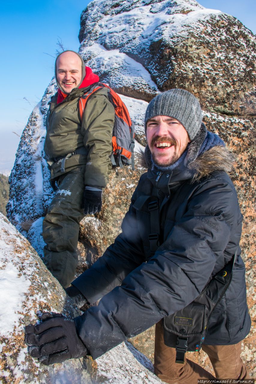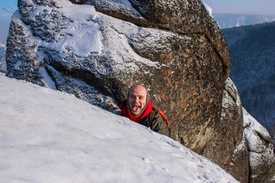 Забраться на одну из вершин массива Такмак не удалось, но пробираться к массиву все равно пришлось карабкаясь по "зализанным" (покрытым снегом и льдом) "бараньим лбам", в двадцатиградусный мороз. После такого понимаешь, почему красноярские скалолазы такие суровые. В народе их называют "столбисты". Красноярская школа альпинизма — одна из самых сильных на постсоветском пространстве.