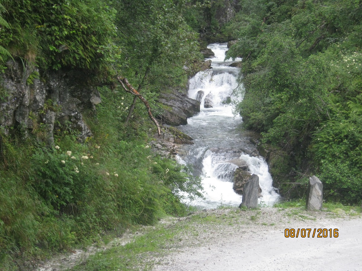 Дорога вниз, к отелю займет примерно 40-50 минут. Если вы безлошадник, остановка в Сталхейме промежуточная, а до следующего 950-го еще уйма времени, то, не доходя до отеля метров 100-150 поверните на Сталхеймский серпантин и спускайтесь к трассе Е-16 (примерно 40 минут). Осматриваем самый крутой (в смысле наклона) в Норвегии серпантин и два водопада. Плюс, держим в голове, что по трассе автобусы ходят по-чаще, чем через перевал (skyss.no в помощь.).