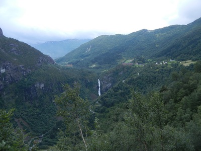 Sivlefossen (146 m). Вид со Сталхеймского серпантина.