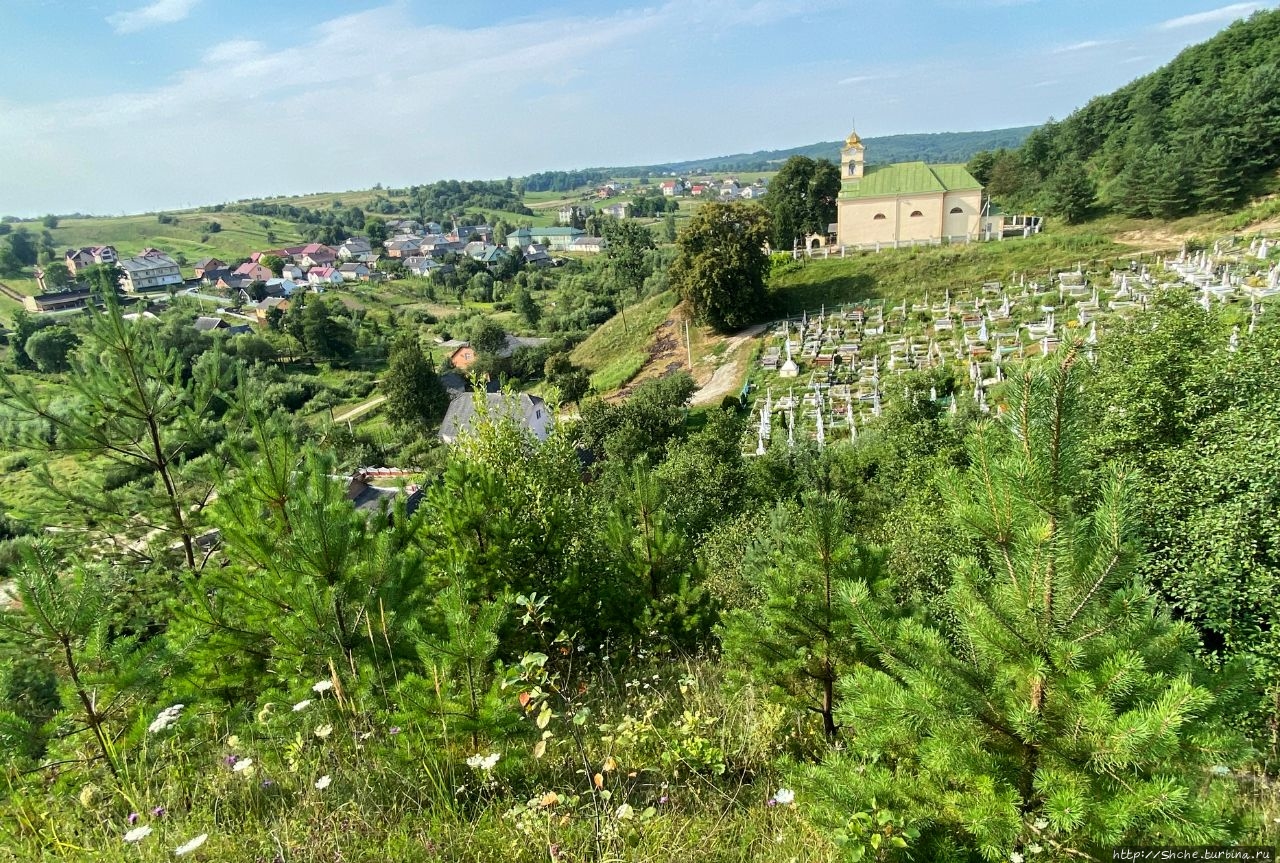 С половины подъема я увидел Церковь Св. Великомученицы Параскевии и кладбище, которые хорошо видны на карте Гугл, значит я как минимум не ошибся местностью.
