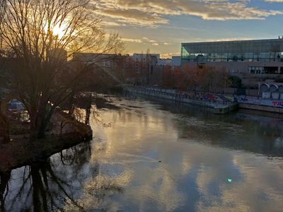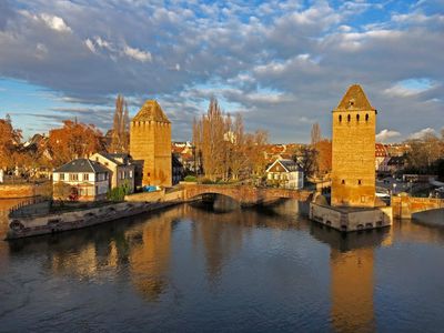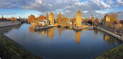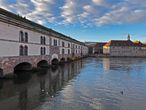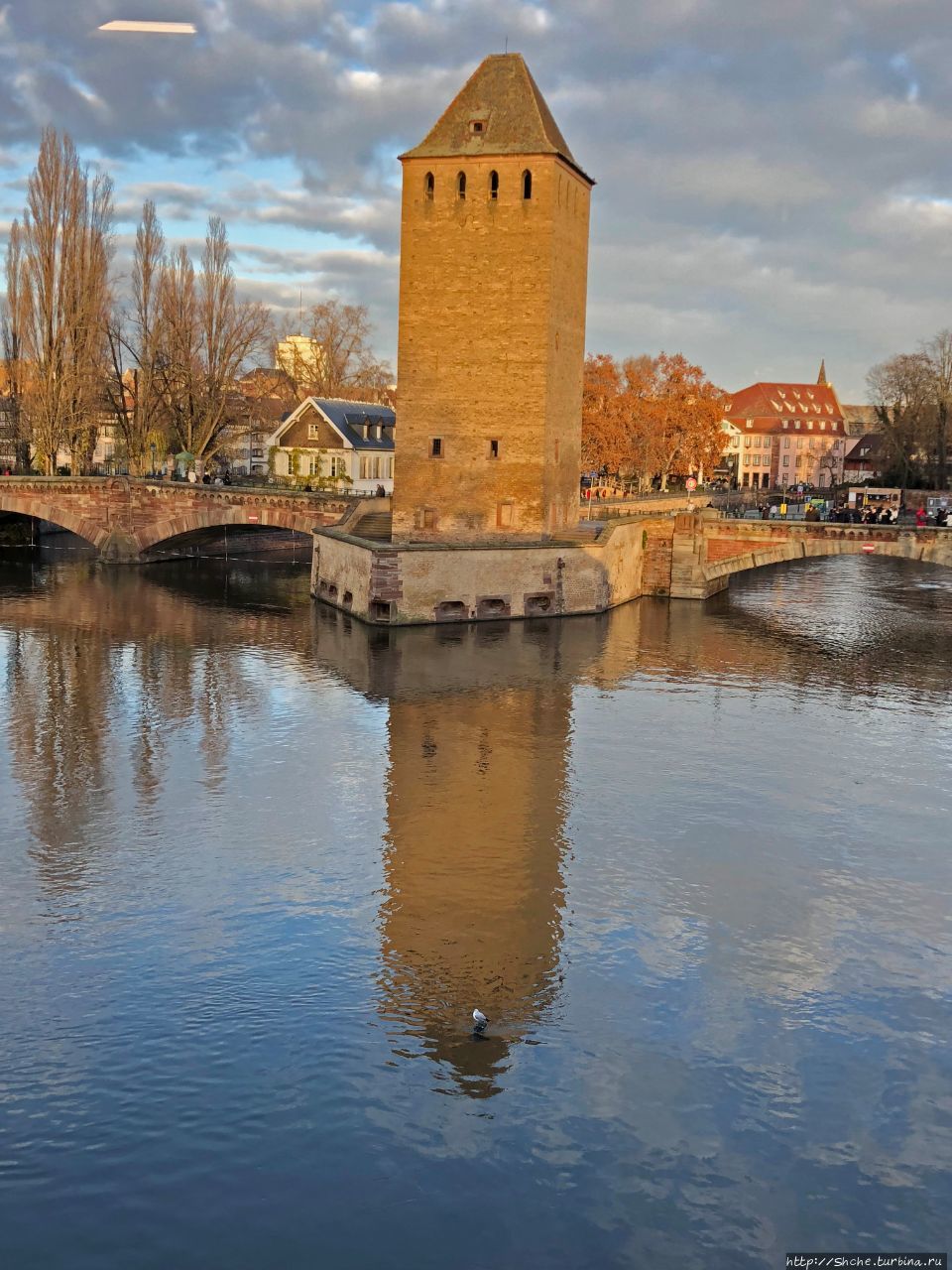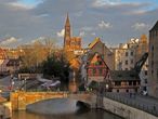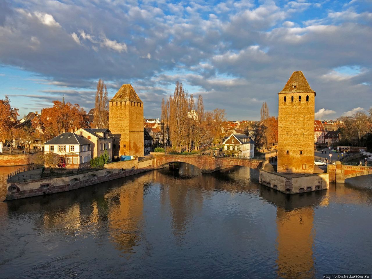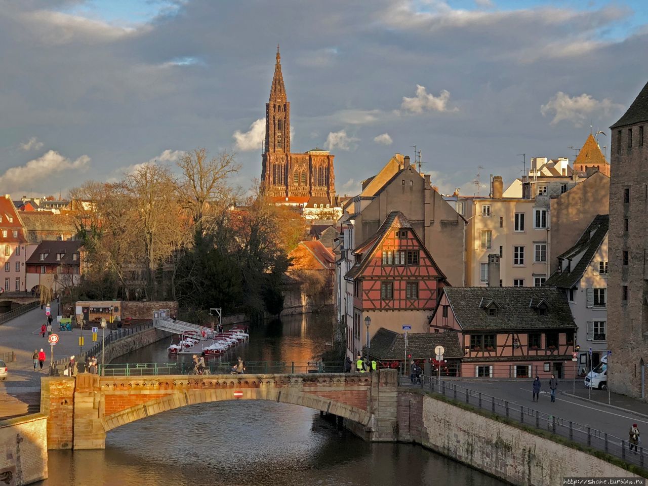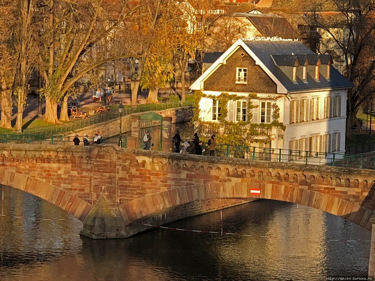 Отсюда, особенно в вечернем освещении, открываются просто чарующие виды на разделяющуюся после моста реку Илль, Старый Страсбург и квартал "Маленькая Франция"...