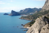 Пятиминутная остановка в красивом месте с видом на новосветскую Зеленую бухту и на гору Коба-Кая.