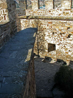 В нашем осмотре мы сперва подняли на внешние стены, а потом уже спустились вниз и прошлись по внутренним бастионам, что я предлагаю сейчас вместе с нами повторить...