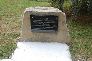 Фактически эта аллея в честь подписания Соглашения между Россией и Абхазией о совместных усилиях в охране государственной границы, подписанного 30 апреля 2009 году и образования Погрануправления ФСБ России в Абхазии.