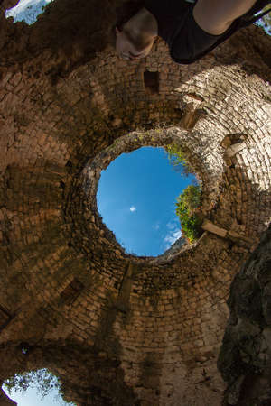 Среди развалин стоит вполне себе целая башня, на которую можно подняться (бесплатно ;) ).