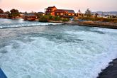 Красивый мостик над "стеклом" перелива и пенным водосбросом.