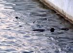 К сожалению, рыбу не видно, темнеет, только верхние плавники и хвосты появляются над водой.