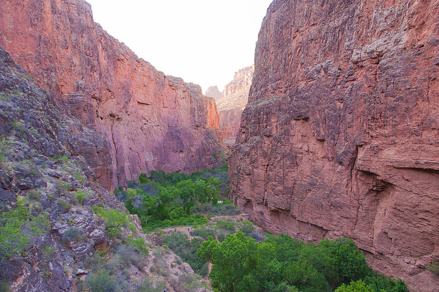 "Хавасу"-- это слово появилось в моём лексиконе несколько лет назад, когда я увидел в одной фотогалереи снимки сделанные в этом каньоне. Многие друзья, которым я показал их, сходились во мнении что фотограф "переборщил с фотошопом, такой гаммы цветов быть не может...." Но всем сразу хотелось в Аризону, в каньон Хавасу. Эта земля принадлежит индейскому племени хавасупаи, проживающему здесь более восемь столетий. Сегодня это самая маленькая народность среди коренных народов Америки, их численность насчитывает около 650 человек. Образованный в 1919 году национальный парк Гранд Каньон поставил племя на грань выживания. Десятилетия они добивались через суды возвращения земель и в 1975 году Конгресс постановил вернуть Хавасупаи 75000 гектаров земли их предков. Сегодня 470 хавасупаи проживает в посёлке Супаи, где и расположен туристический центр контролирующий посещение его туристами. Открывается он в феврале и вот на протяжении трёх лет мы пытались дозвониться до него в день открытия чтобы зарезервировать себе места на праздничные выходные. Примерно через неделю после безуспешных попыток, когда на другом конце провода всё же кто то поднимал трубку, нам сообщали что свободных мест на длинных выходных не осталось. Эта же история повторилась и в этом году. Тогда мы решили пожертвовать несколькими рабочими днями и забронировали себе место на кемпграунде на конец мая. Несмотря на то что деревня живёт в основном за счёт туризма, сервис очень неторопливый, средства коммуникации примитивные (мобильные телефоны не работают), плату за резервирование с кредитной карты не берут, подтверждение в электронном виде не присылают, а лишь на месте на месте производят расчёт.