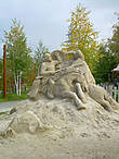 Итак, Сургут. Только выйдя из аэропорта, понимаешь, что ты на Севере. Само здание аэропорта выглядит как иглу и украшено гирляндами-оленями, У входа стоят цветные скамейки. Вообще, с цветом в Сургуте все в порядке: безумные расцветки встречаются на каждом шагу — начиная от скамеек, заканчивая зданиями. Город маленький: за день можно обойти при желании и наличии времени. Люди очень спокойные — сколько ни ходила в кафе, ни разу не видела и не слышала шумно ввалившейся толпы молодежи, не слышала громкого смеха, импульсивных разговоров. Удивляет большое количество машин. По словам местного жителя, на одну семью приходится минимум две машины. И это не жигули там какие-нибудь, а иномарки, в основном. Мне понравилось: храм Преображения Господня, Биг-Бен (школа английского языка), "Старый Сургут" (деревянное зодчество), песчаные фигуры. Не понравилось: за исключением одного дня, всю неделю шли дожди и был сильный холодный ветер. Говорят, что в это время может уже и снег выпасть (время — середина сентября).