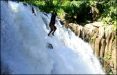Как оказалось здесь работают, наверное самые счастливые люди на острове. Таксист сказал, что они как только видят туристов, то сразу начинают с вершины водопада прыгать в воду.
