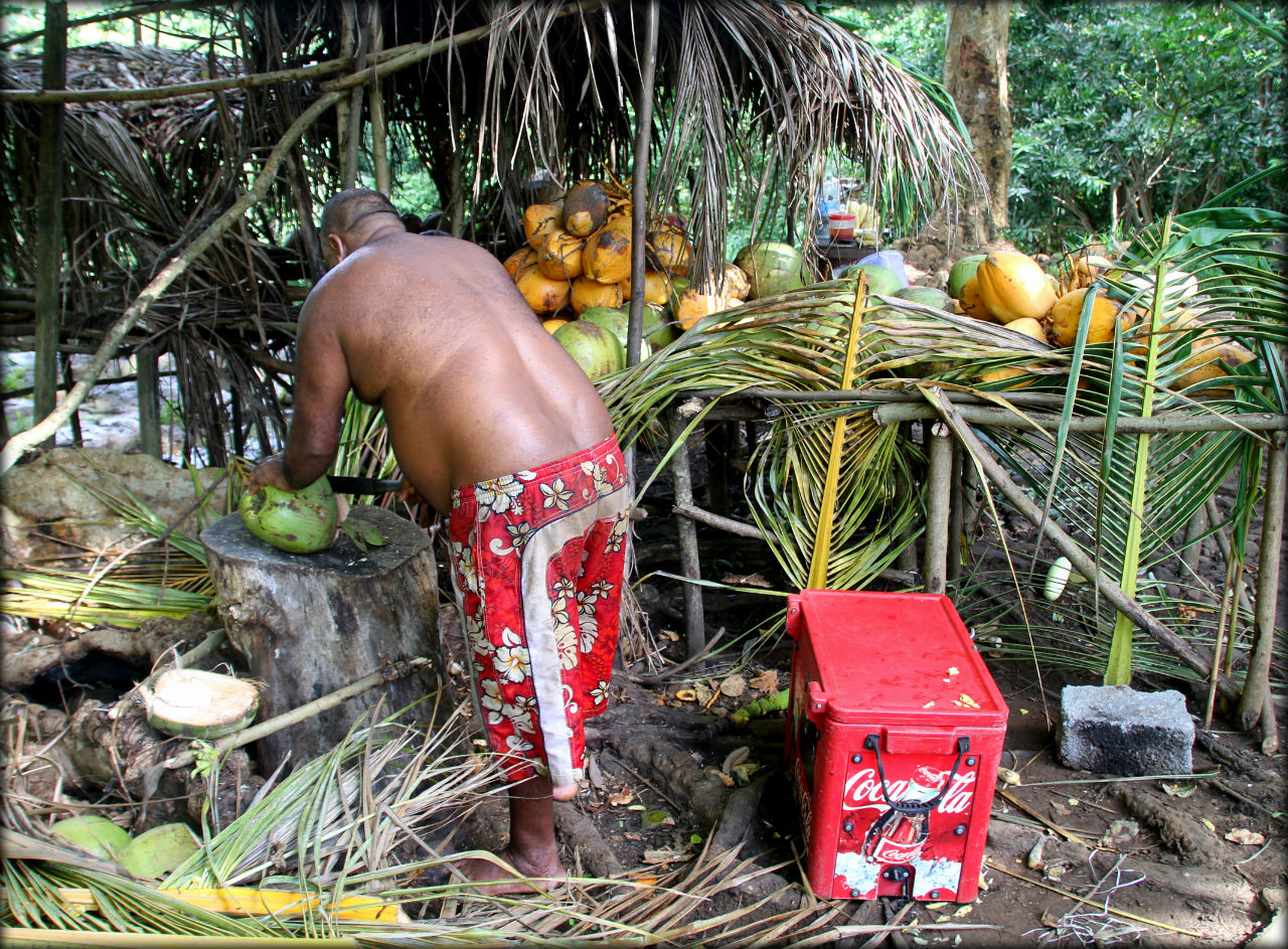 Здоровый мужик в красных трусах, который прыгнул первым и взял с меня плату, потом продал нам вкусный кокос.