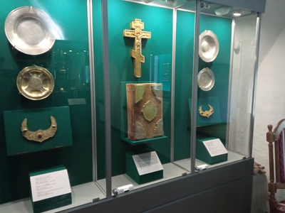 В Золотой кладовой находятся многочисленные вклады царей, князей, именитых государственных и религиозных деятелей. Это церковная утварь вклада князей Шуйских, потир царей Ивана и Петра и царевны Софьи, кадило митрополита Геласия, иконы в серебряных окладах князей Пожарских.