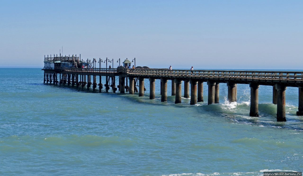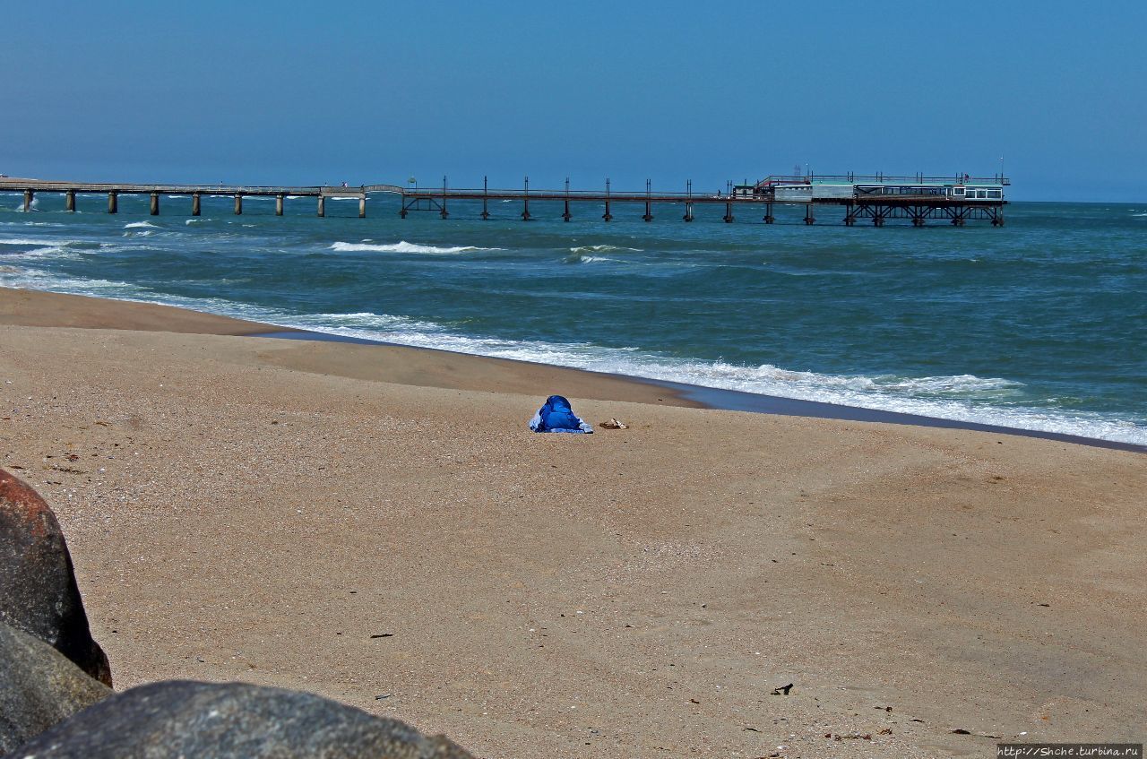 Этот причал уже давно не используется для швартовки судов, есть более удобное место в другой бухте. Потому он одиноко "маячит" на большом океаническом пляже "Палм-Бич".