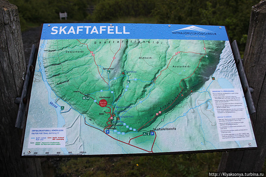 Она не от дождя скользила, она была засыпана камушками и эти камушки под нашими ногами скатывались как по льду с этой тропинки вниз. Пришлось подниматься рядом с тропинкой по траве. Мы очень устали, и поэтому как только перед нашими глазами открылся вид на водопад мы остановились. Дальше идти не было сил. Отметили для себя: "Да, мы видели Свартифосс", сфотографировали его, себя на его фоне, его с 17-ти кратным зумом и отправились обратно к машине.
