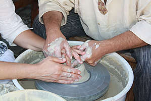 На острове, где в 1551 году был основан Иваном Грозным город — крепость, сегодня возрождается жизнь. Почему? Да потому, что был этот остров заточением для людей, символом смерти.А сегодня оживают монастыри, храмы; оживают ремесла . На острове пекут хлеб, кричат петухи, звонят колокола.....На дворе , где работают мастера, есть и Гончар. Его так и зовут многие годы, еще с Нижнего Новгорода. Он — Мастер с большой буквы. Его гончарный круг — вселенная. На глазах творит Гончар чудеса и дает приобщиться к этому людям. Мастер-класс длится минуты, но человек, впервые севший за круг, успевает почувствовать себя Творцом! Умелые руки Гончара и ваши руки соединяются в одно , и из хаоса рождается новая вещь.
