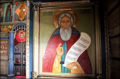 Внутри помещение церкви больше похоже на деревенскую избу. Деревянные скамейки, массивные двери, спокойное освещение, аромат некрашеного дерева создают атмосферу домашнего уюта. Здесь достаточно просто, но проникновенно, особенно если вы знаете историю этой православной церкви.