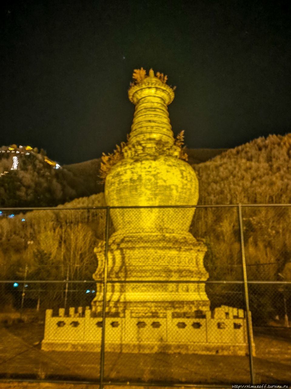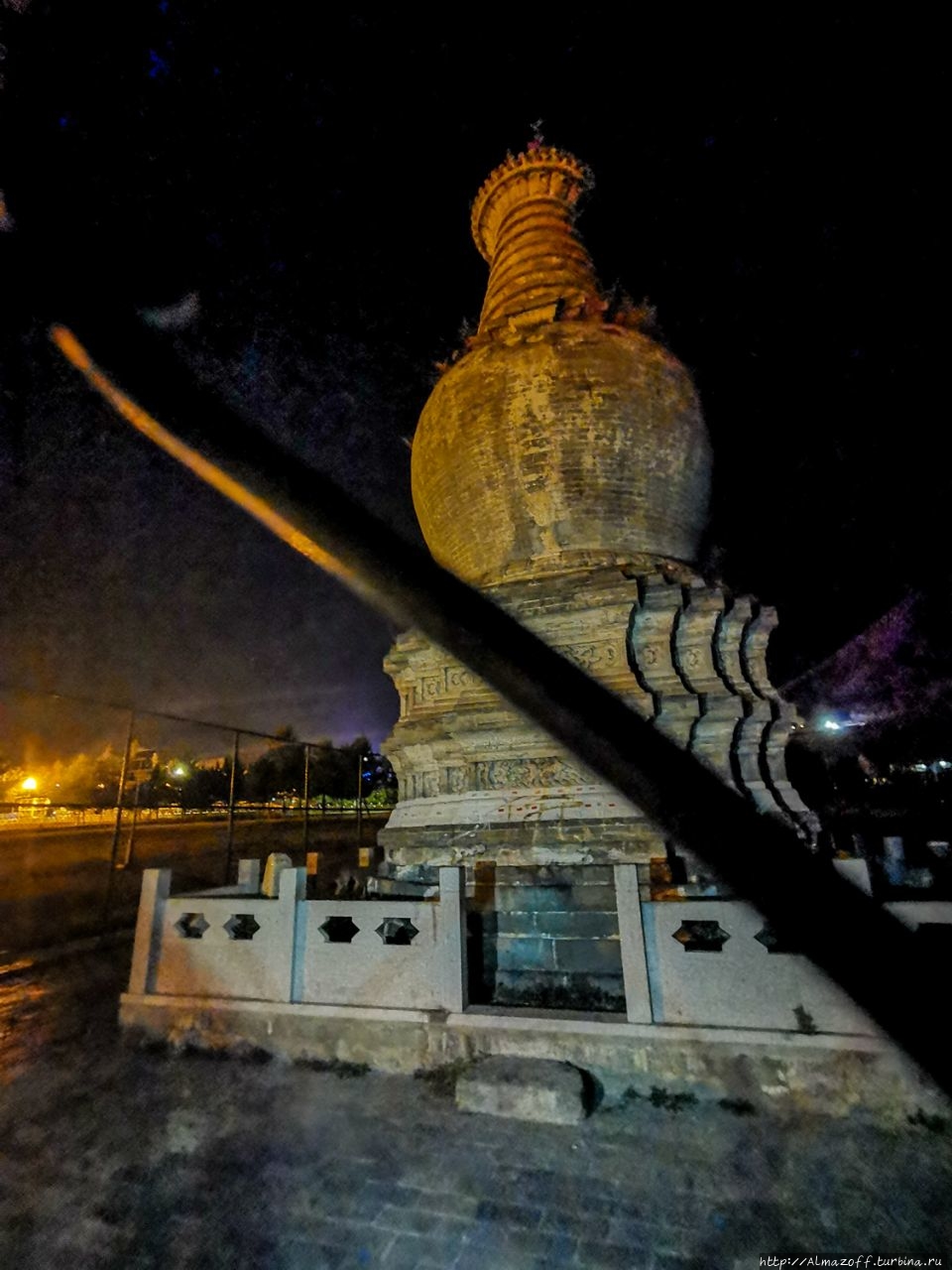 Набрели в темноте ещё на одну старую ступу в непальском стиле, но она почему-то огорожена забором из сетки-рабицы. Рядом встретили снова монаха Жорика, он нас узнал, радовался.