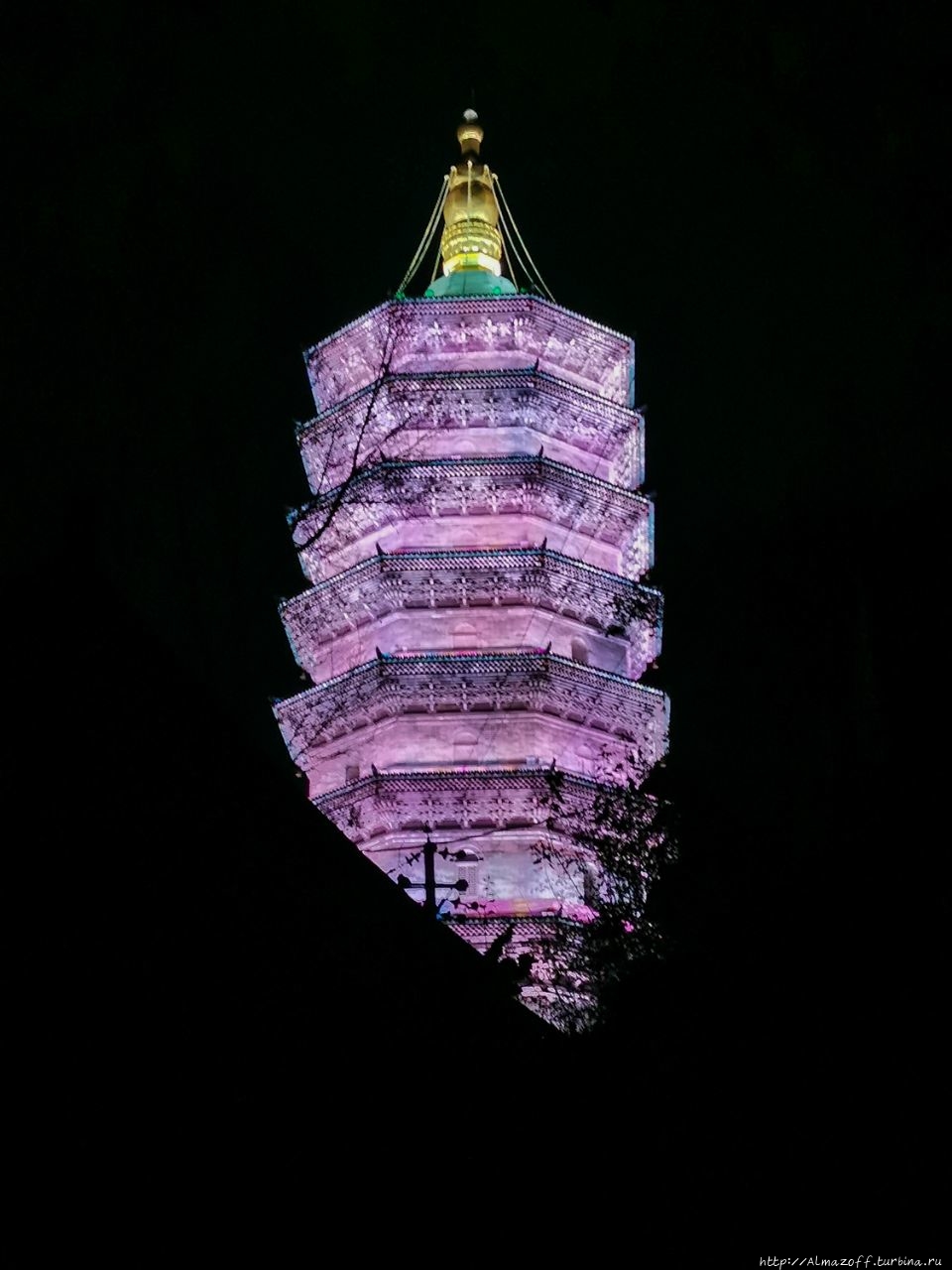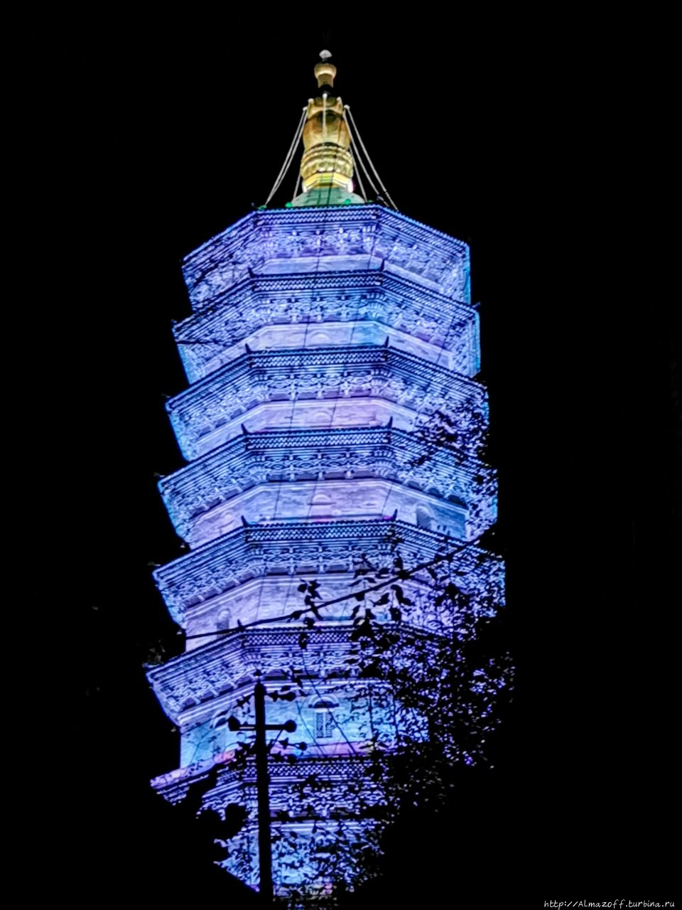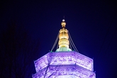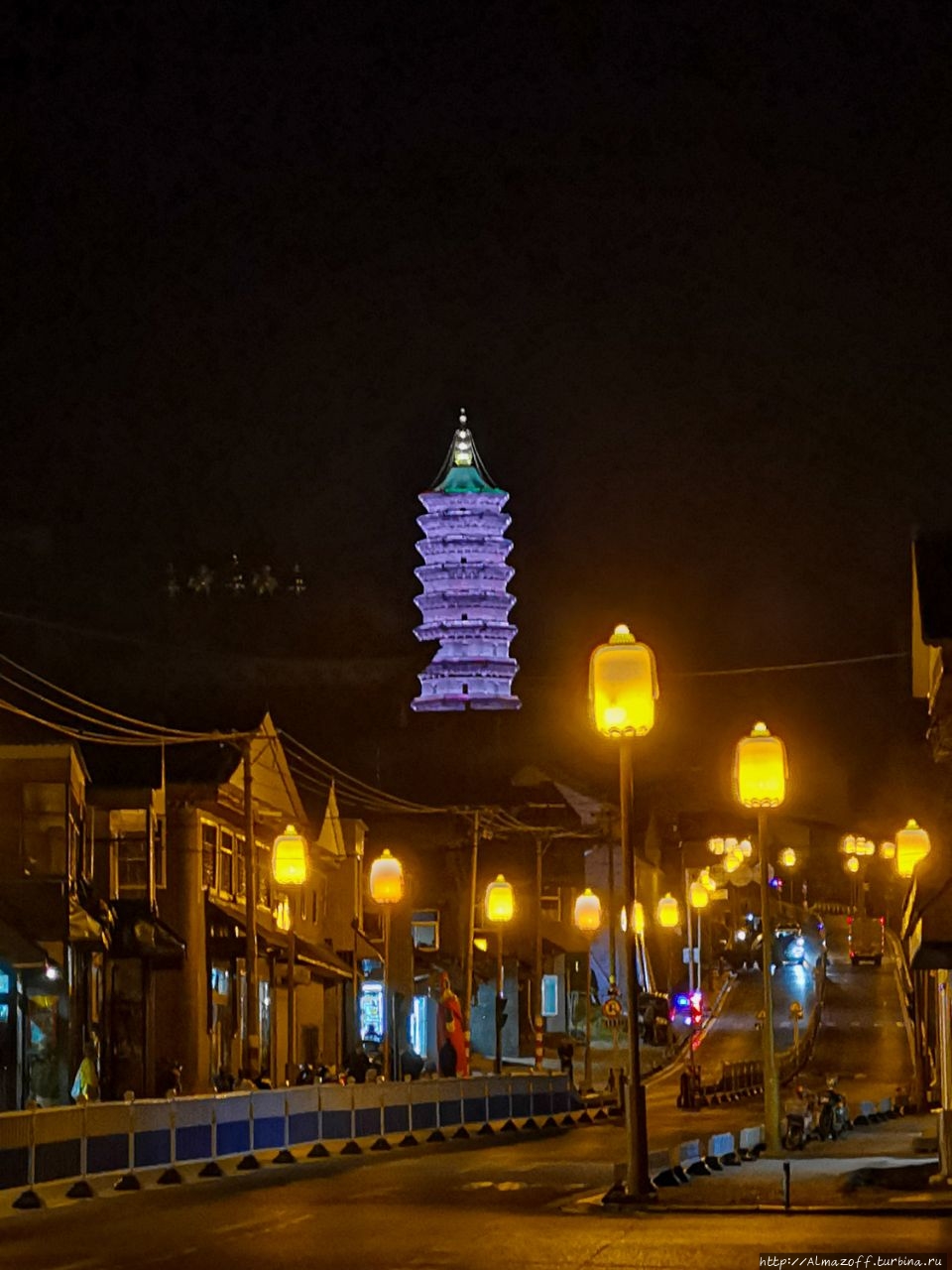 Напоследок прогулялись к высокой погоде (22м) на склоне возле очередного монастыря, которая подсвечена фиолетовым и синим цветами. Не хватает только трансовой музыки, выглядит всё сюрреалистично, но красиво.