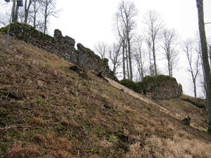 Ну да, лес, а в лесу-то как раз, на холме расположились руины средневекового замка Хельме.