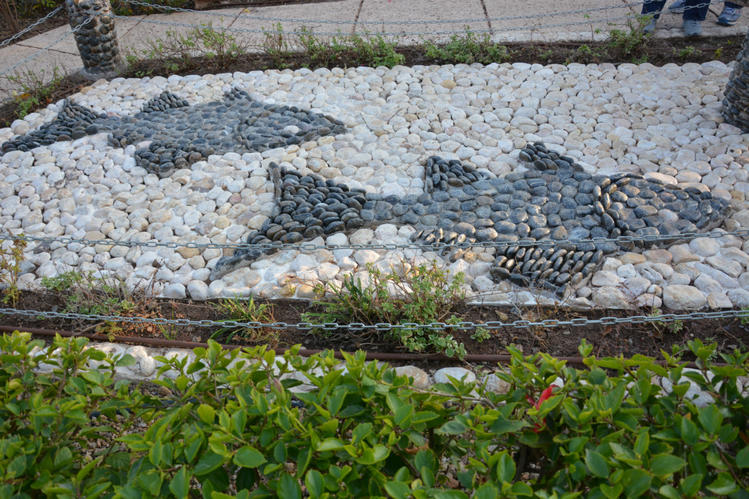 В парке декоративный фонтанчик с "рыбками"