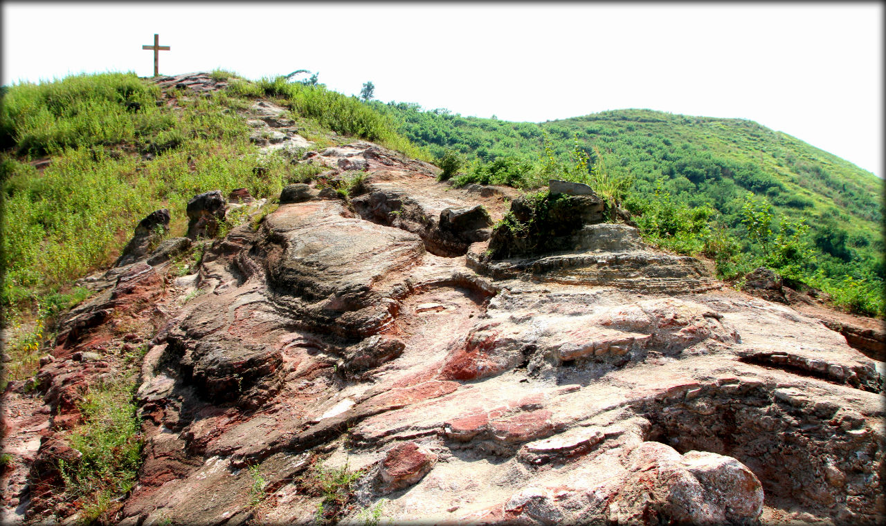 Я не стал выкладывать кадры на которых толпа туристов, отдыхающие лошади и сувенирные лавки. Мне интереснее были окрестные пейзажи. Правее вдоль холма видна дорога по которой мы поднимались сюда.