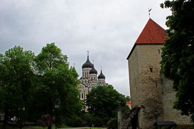 Уже почти на вершине сквозь пышную растительность показались первые здания старинный укреплений Таллина...