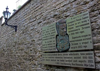 Прямо у подножия нашли мемориальную доску первому президенту России...