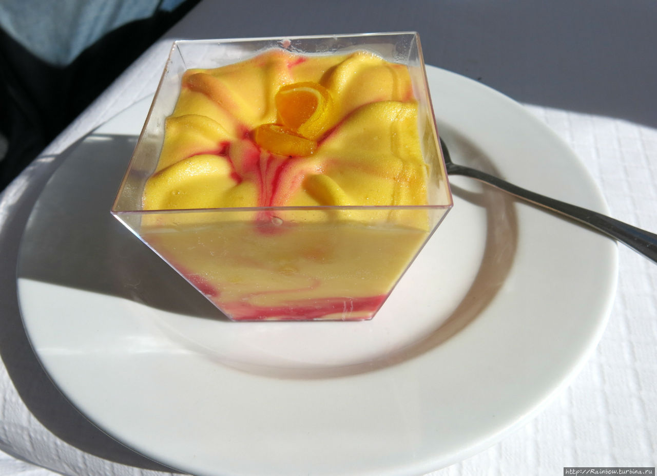Но холодный ветер задувал, несмотря на солнце, и тело требовало тепла, да и время обеда подоспело, и тогда мы решили задержаться здесь еще на часок. Нашли единственный открытый ресторанчик на берегу, который имел как открытую часть, так и закрытую со стеклянными стенами, и зашли туда пообедать.