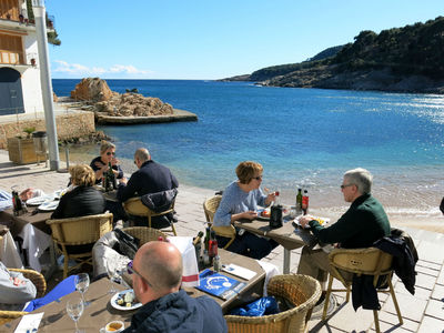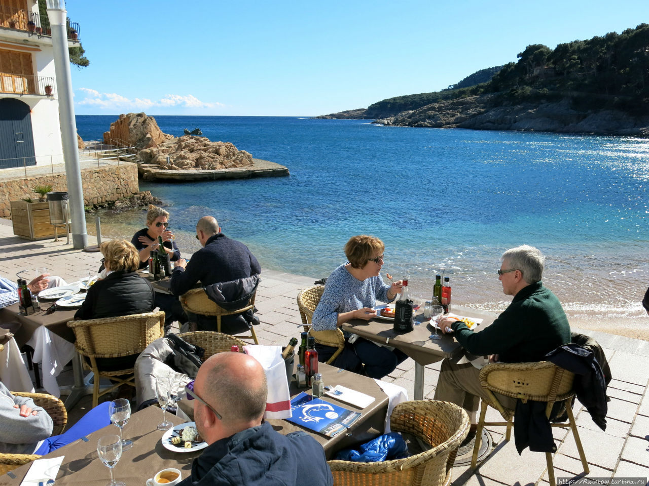 Ну собственно, это городок из пяти улиц, нескольких гостиниц, залива с пляжем, ресторанчиков, белых домиков и красивых морских пейзажей. Когда я потом открыла веб-страницу городка, я не нашла ничего другого, никаких рассказов об истории, никаких интересных легенд. Это — просто бывшая рыбацкая деревушка, судьба которой, как и многих тысяч ей подобных, изменилась с развитием туризма во второй половине двадцатого века. В сезон здесь кипит жизнь. Городок полон туристов, местных каталонцев и французов, живущих неподалеку. А в феврале? Смотрите сами.