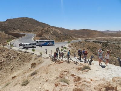 Следующую остановку мы сделали через 10 км. после Матматы в довольно известной кафешке. На её втором этаже имеется смотровая площадка, и потому туда каждый раз завозят туристов. Не могу сказать, что открывающиеся виды поражают воображение.