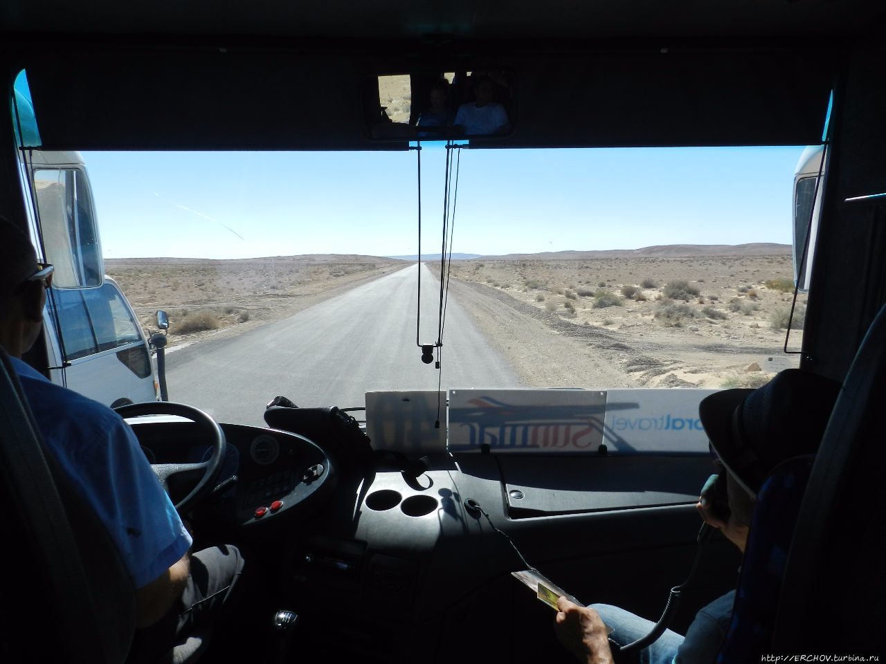 До Жасминовой революции всё обучение в Тунисе велось на арабском. В настоящем во внутренних районах страны действуют три берберские школы, одна из которых находится здесь в Матмате. По словам гида, при прежнем Президенте подобное было невозможно.Загружаемся в автобус, движемся дальше. Справа вдали тянутся Атласские горы, слева унылая бесконечность пустыни, где земля представляет собой серо-жёлтый песок, усыпанный выжженными кочками кустарника.