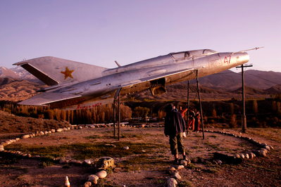 Майская цветущая Киргизия и её буддийское наследиеБольше всего конечно впечатляет само озеро, особенно на закате. Лучше всего закат наблюдать от старого советского истребителя Миг-21, что установлен на крутом берегу озера.