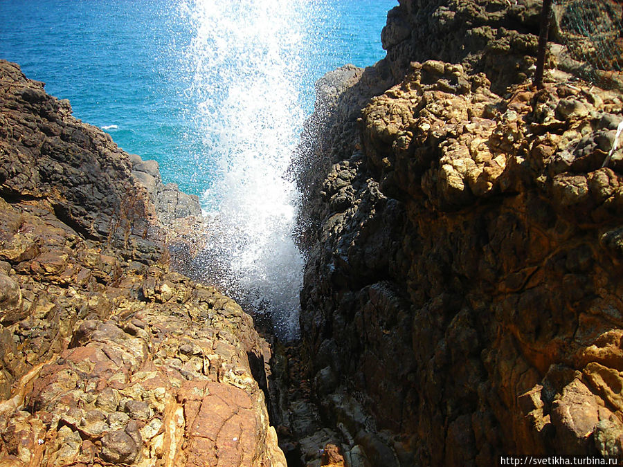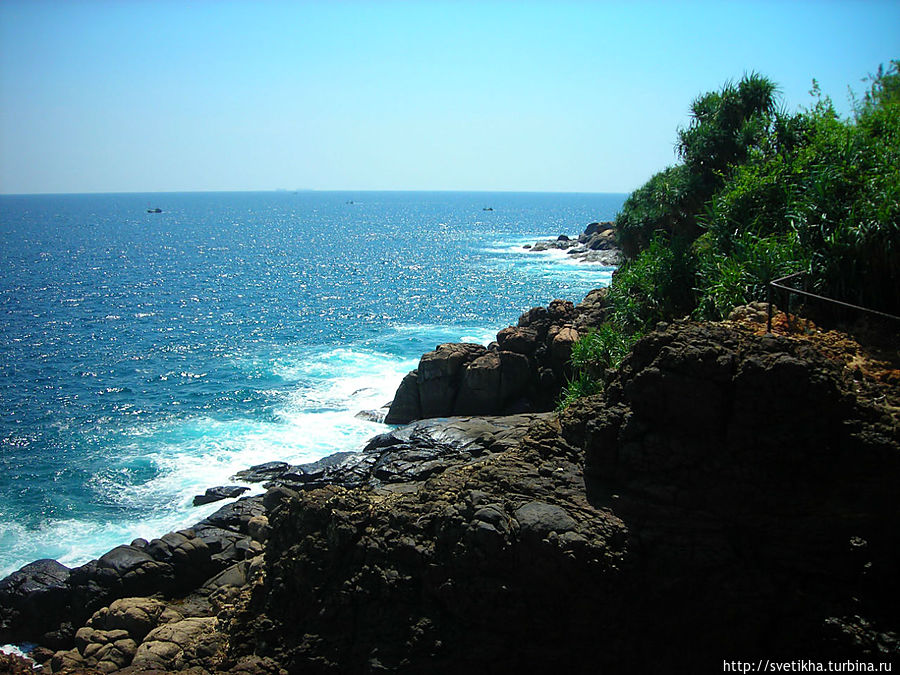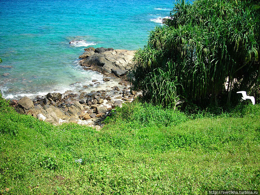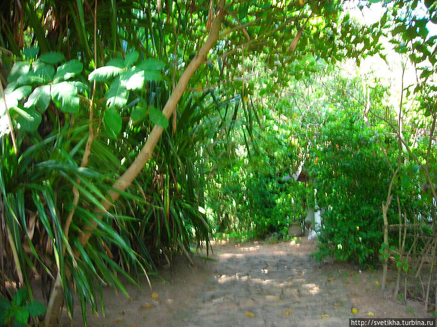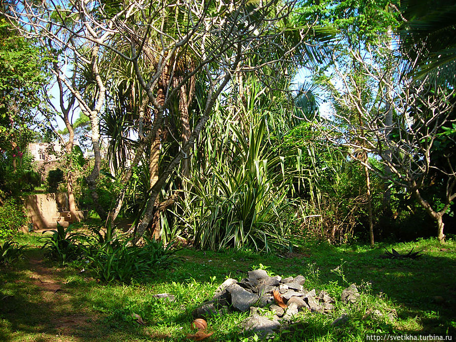 Сейчас он занимается мелкой рыбалкой на катамаране. Дом восстановлен и одну комнат с видом на океан сдает за символическую плату- 6$ сутки. В комнате есть индивидуальный туалет и душ. На мой вопрос, можно ли пользоваться кухней, он смущенно повел меня туда и показал, что ест. Это было две миски: одна с какими-то зелеными овощами, другая с рыбой. Было очень трогательно. Очевидно, из-за плохого английского, мой вопрос звучал: «Что Вы едите?». Готовит Сирипала на кирпичах , на открытом огне, газа нет. Меня он угощал рыбой и тушеным джекфрутом. Очень вкусно готовит, настолько тщательно, что мне стало досадно за себя. Мы имеем все современные приспособления на кухне, но так готовить и в голову не приходит. Рыбу Сирипала маринует в специях, в кари. Затем добавляет лук, чеснок и помидоры. На древней деревянной терке (такие я не видела даже в антикварных лавках Шри-Ланки) трет кокос, отжимает из него молоко и заливает им рыбу. Благодаря моему хозяину, который подробно рисовал схему дороги, я посетила Блоу Холл- морской фонтан, который вырывается из ущелья. Похож на наши гейзеры на Камчатке, откуда я родом. В 30 минут езды на автобусе от Тангале в поселке Rakawa есть черепашья ферма. Поехала на автобусе. Но меня ждала неудача. Ферма была закрыта, открывается в 19-00. Опечаленная, я пошла на проезжую часть дороги по мангровым джунглям. Причудливые деревья, огромные кактусы, буйволы, цапли и ягуаны попадались мне на пути. Они абсолютно безопасны. Интереса к моей персоне не проявляли, только позволяли себя фотографировать. На дороге поймала тук-тук, до Тангале он просил 500рупий, сошлись на 300. Через 20 минут я была дома, где меня ждал обед и цейлонский чай. После трапезы, прогуливаясь по пляжу, я повстречала группу ребят с Украины. Во время нашего разговора, одна из них сказала, что ей знакомо мое лицо и зовут меня Светлана. Я ее видела в первый раз. Все оказалось очень просто: она читала мой рассказ в Интернете о первой поездке на Шри-Ланку, использовала его как путеводитель по нынешнему путешествию на острове, они благодарили меня за информацию. Мне было очень приятно и удивительно, что встреча состоялась в Шри-Ланке. Вот, ради этого, и стоит писать……