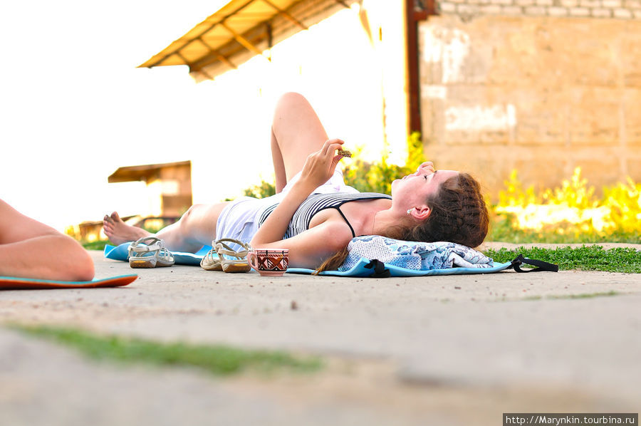 Легли мы спать часа в 4 утра. Ну а к шести утра от духоты мы вылезли на улицу. Разлегшись на подстилках в тени от крыш, продолжали подремывать. Лежали на дороге, мимо проезжали машины, проходили рыбаки... последние косо и с любопытсвом, в полном недоумении посматривали на нас.