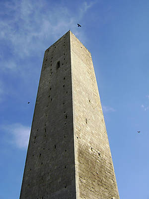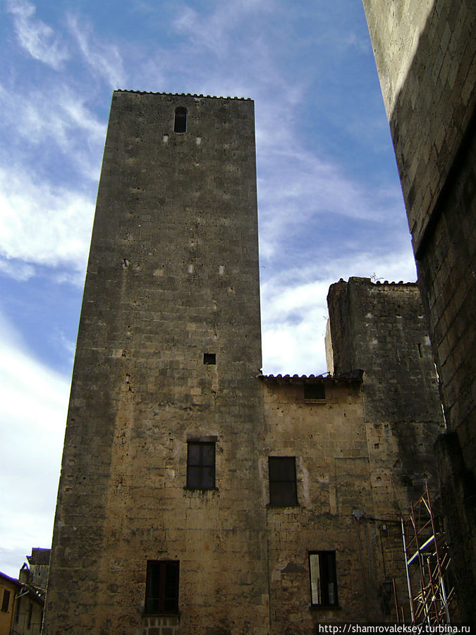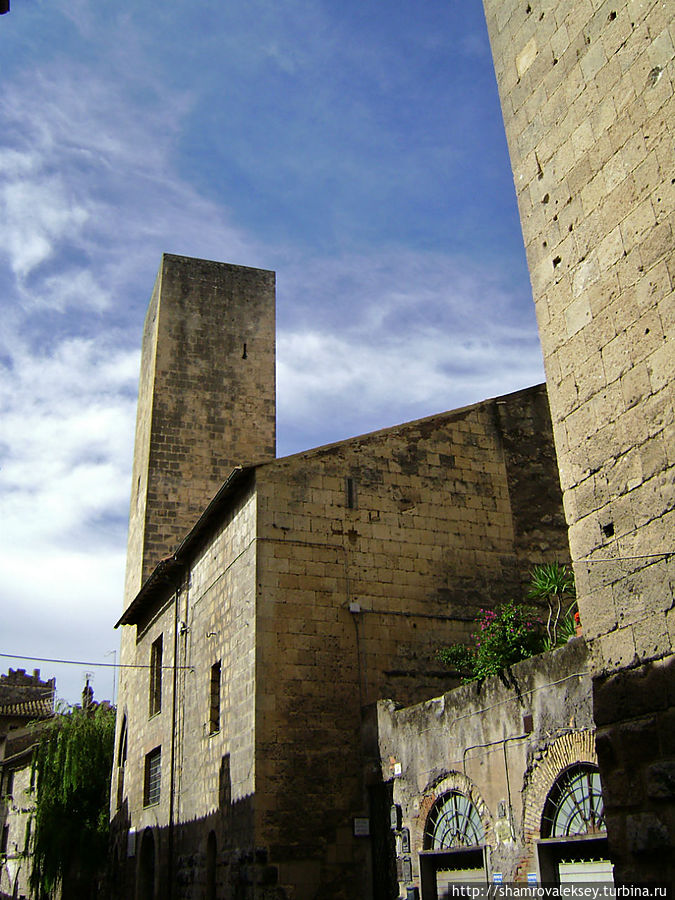Но вернусь в Тарквинию... Еще одним интересным фактором в небесной линии города являются башни-дворцы богатейших семейств города. Как всегда в таких случаях чем богаче семья тем выше башня, но как только финансы фамилии приходили в упадок, жители города разбирали верхние этажи семейной башни, уменьшая высоту здания.