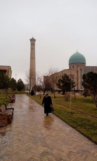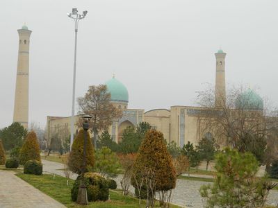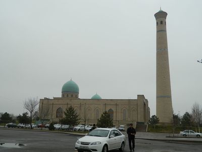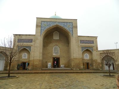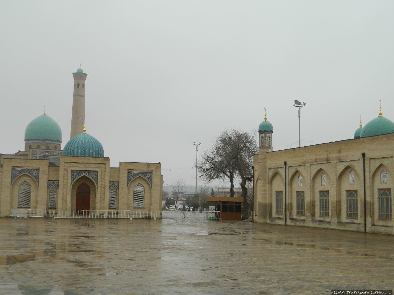 Мечеть Тиллашейх, или "Золотой шейх", некогда была самой главной мечетью Ташкента, хоть и не поражает своими размерами. На фото она справа