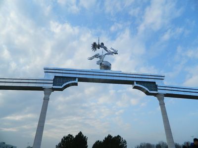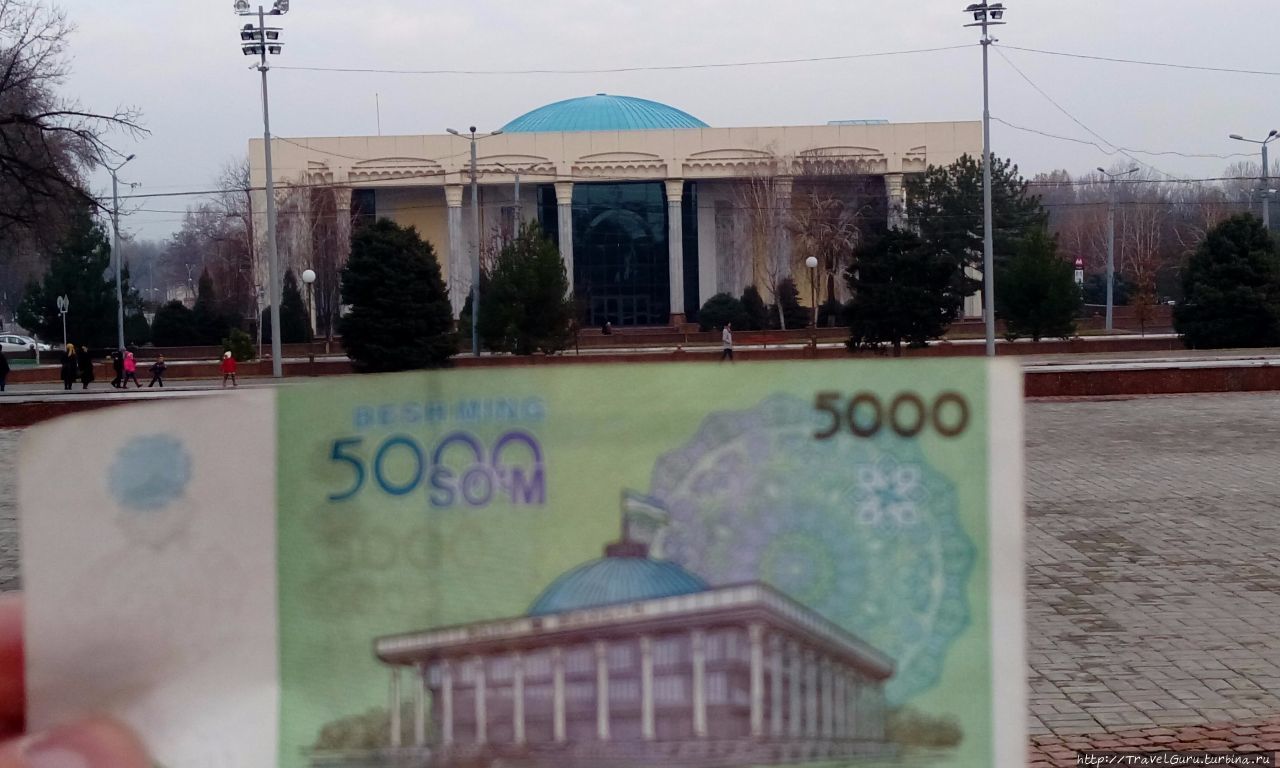 Если стать лицом к арке, то прямо за вами будет здание парламента, — меджлиса. Он же расположен на самой крупной купюре в 5000 сум.