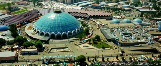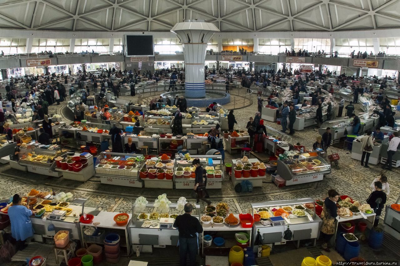 Вокруг здания с куполом расположены километры прилавков, на которых продают овощи, фрукты, специи для любых блюд, зелень. Без прилавков, просто на земле продают всё, что можно представить: новую и б/у обувь, электронику, бытовую технику, хозтовары, одежду и прочее. В самом куполе расположены мясные ряды, а под самым куполом этаж с орехами. Побывать в Узбекистане и не посетить базар — плохо, а посетить и не затовариться орехами... ну вы не сможете пройти мимо просто. Достаточно просто окунуться в атмосферу рынка, начать ходить между прилавками, торговаться, пробовать и интересоваться, — остановиться будет невозможно.