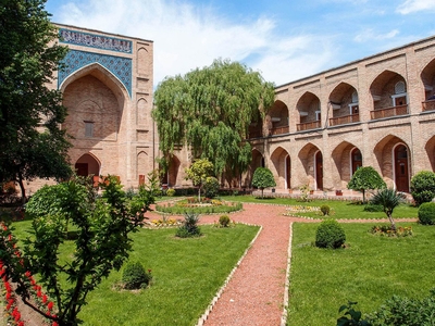 За несколько веков существования чего только не происходило с медресе. Например, в 18 веке здесь был караван-сарай, в котором останавливались приезжие купцы, а в 19 веке здание служило крепостью кокандских правителей.