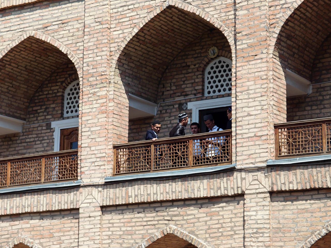 Через пару минут, едва мы прошли через портал, как раз началась перемена, арочные галереи и балконы медресе заполнили ученики. Они держались с достоинством, разговоры между собой вели тихими голосами и, главное, делали вид, что нашей группы не замечают. Было бы вполне естественно в данной ситуации, если бы парни откровенно пялились на интуристов или, по крайней мере, бросали частые взгляды, но нет!